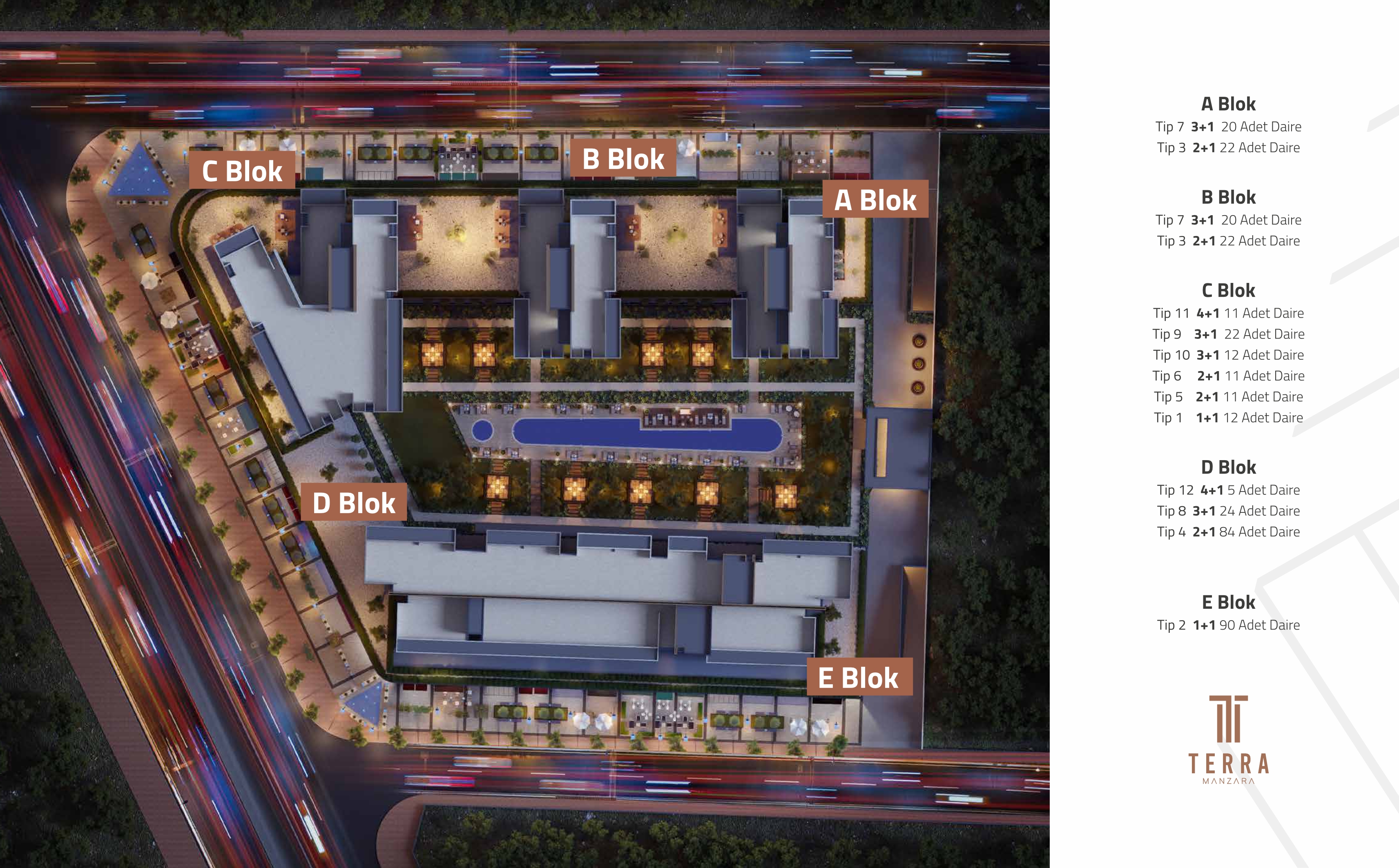 Terra Manzara, 18.003 m² alan üzerinde 5 adet blok ve 355 daireden oluşmaktadır. Proje, sadece konutlardan ibaret değil; mahalle kültürüne özgü tasarım detaylarıyla huzurlu ve sosyal bir yaşam alanı oluşturmayı hedeflemektedir. İnovatif ve akılcı mimari çözümler, size ve ailenize mutluluk getirecek bir "manzara" vaat ediyor.